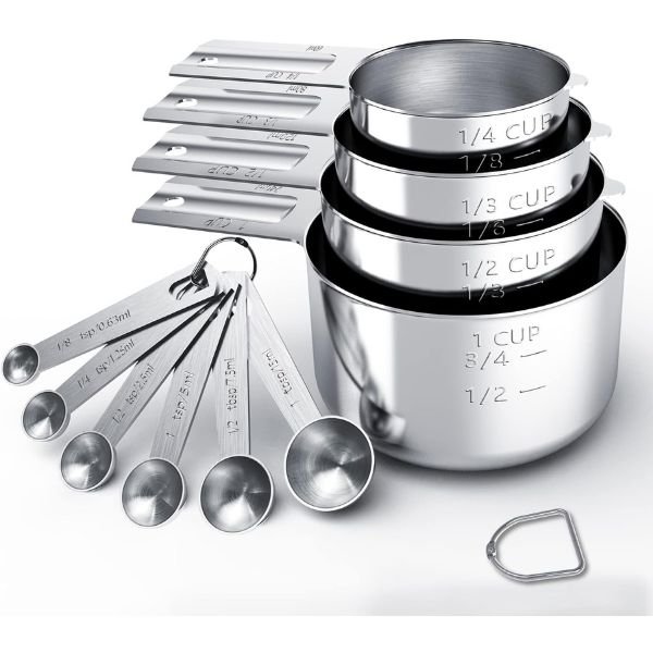 • [Multiple Sizes]: Including 5 Measuring cups (1/8, 1/4, 1/3 , 1/2 , 1 cup), 5 Measuring spoons (1/4, 1/2 , 1 tsp, 1/2, 1…